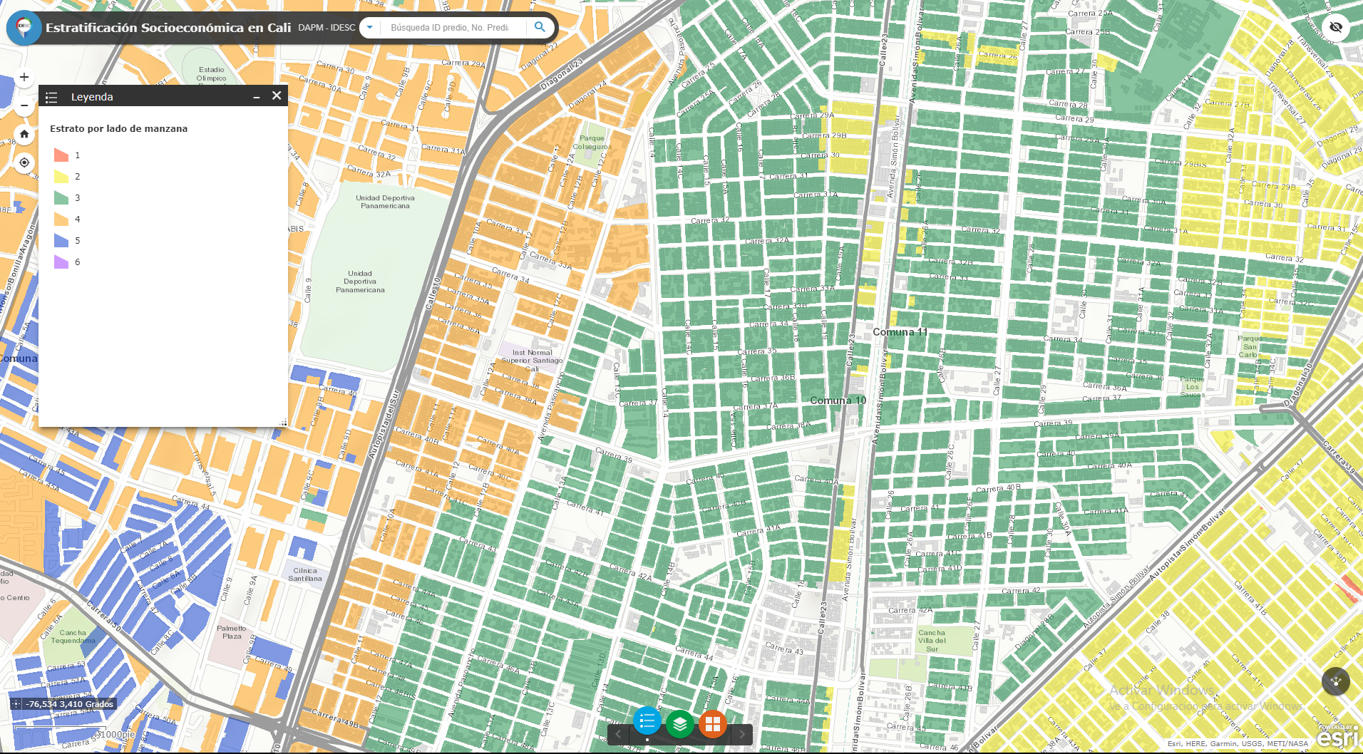 Información espacial de Estratificación Socioeconómica por lado de manzana, el cual muestra la clasificación de la población de una localidad en diferentes grupos socioeconómicos o estratos, de acuerdo a los lineamientos y metodología estipulados en el artículo 102 de la Ley 142 de 1994, "Ley de los servicios públicos domiciliarios". Los datos socioconómicos son actualizados periodícamente por la oficina de Estratificación del Departamento Administrativo de Planeación Municipal.